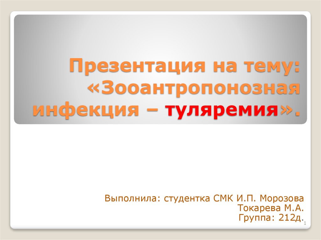 1. Презентация на тему: «Зооантропонозная инфекция – туляремия».