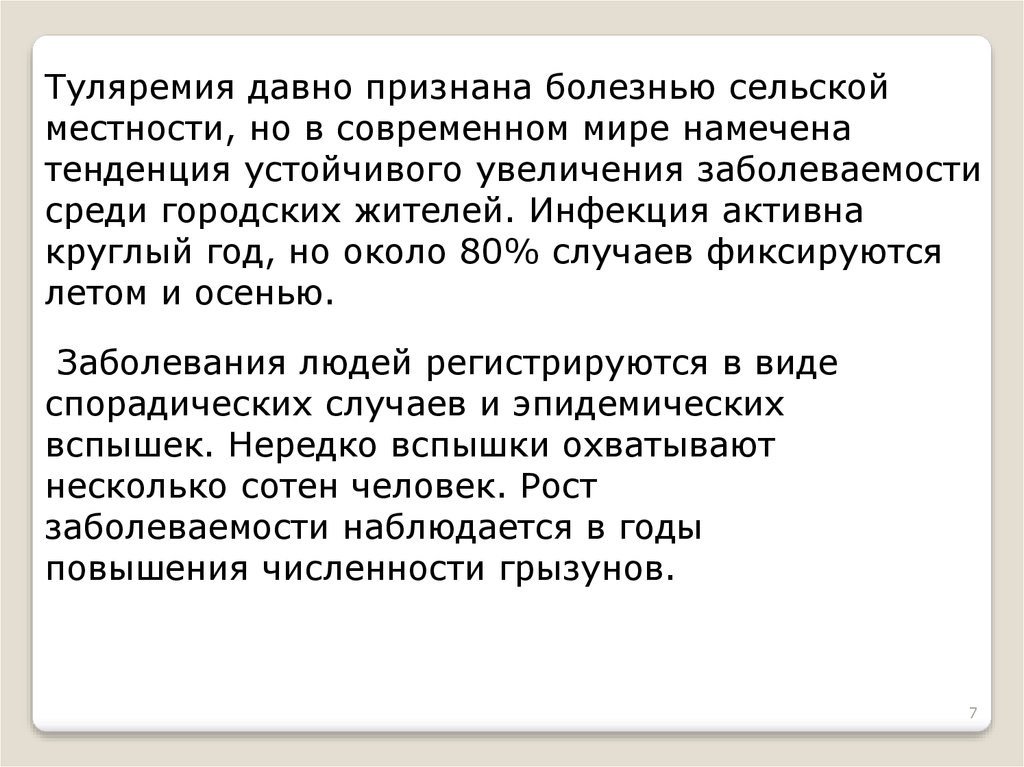 Туляремия давно признана болезнью сельскойместности, но в современном мире намечена
