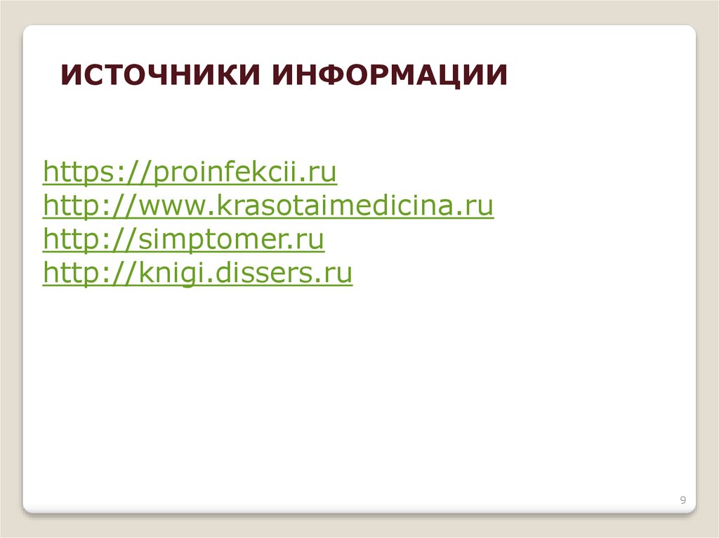 ИСТОЧНИКИ ИНФОРМАЦИИhttps://proinfekcii.ru