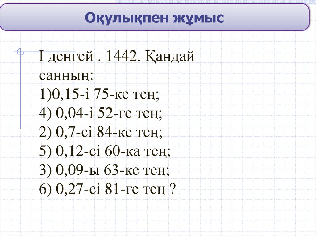 Оқулықпен жұмысІ денгей . 1442. Қандай