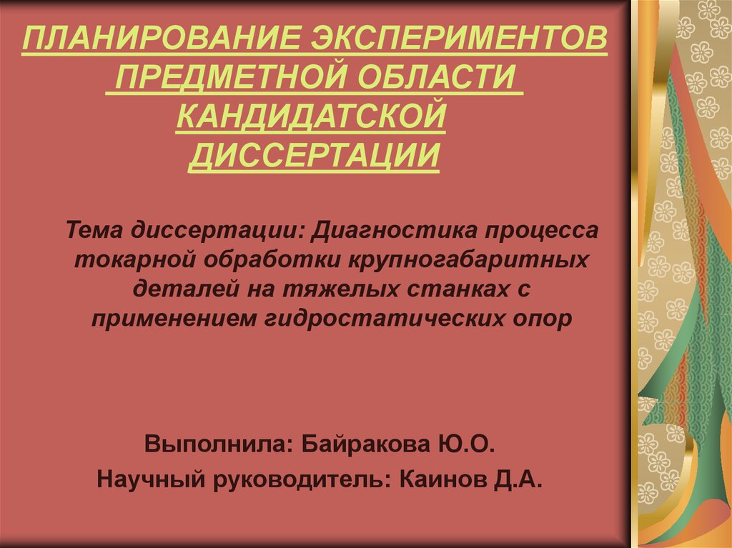 ПЛАНИРОВАНИЕ ЭКСПЕРИМЕНТОВПРЕДМЕТНОЙ ОБЛАСТИ