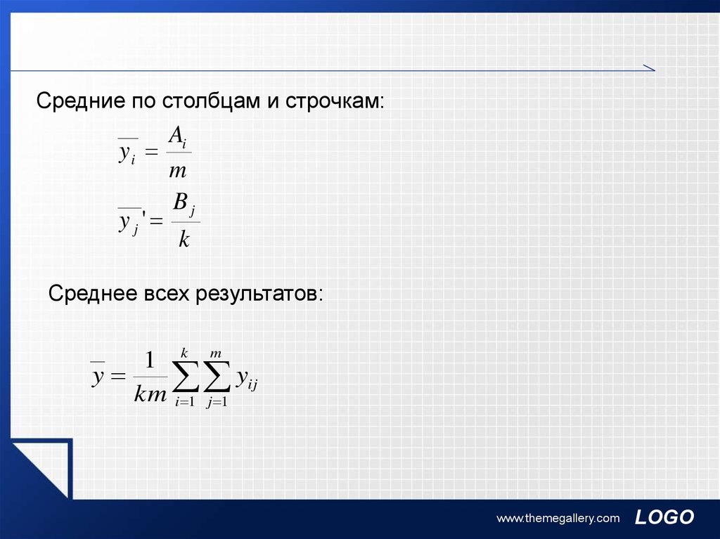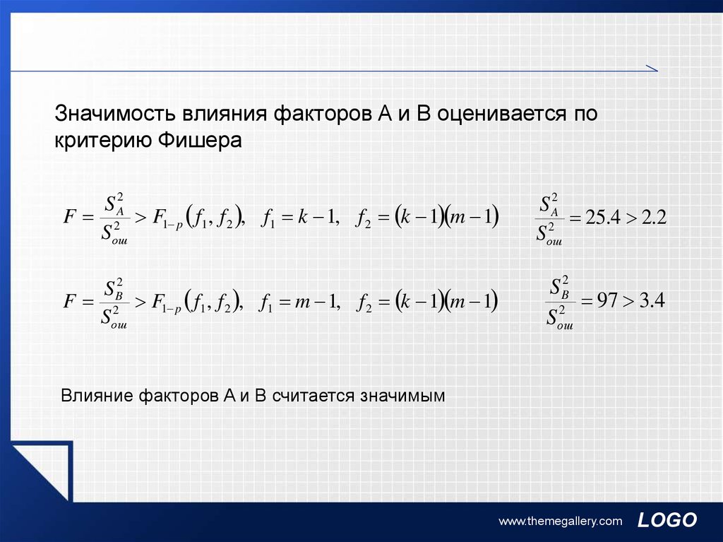 Значимость влияния факторов A и B оценивается покритерию Фишера