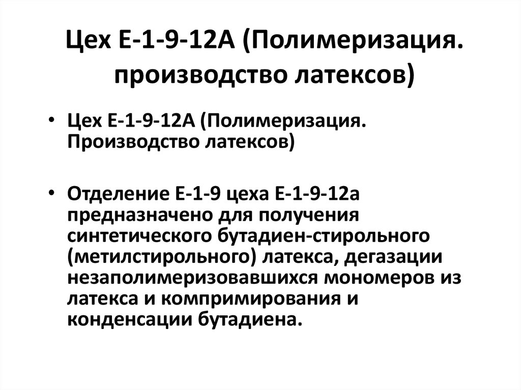 1. Цех Е-1-9-12А (Полимеризация. производство латексов)