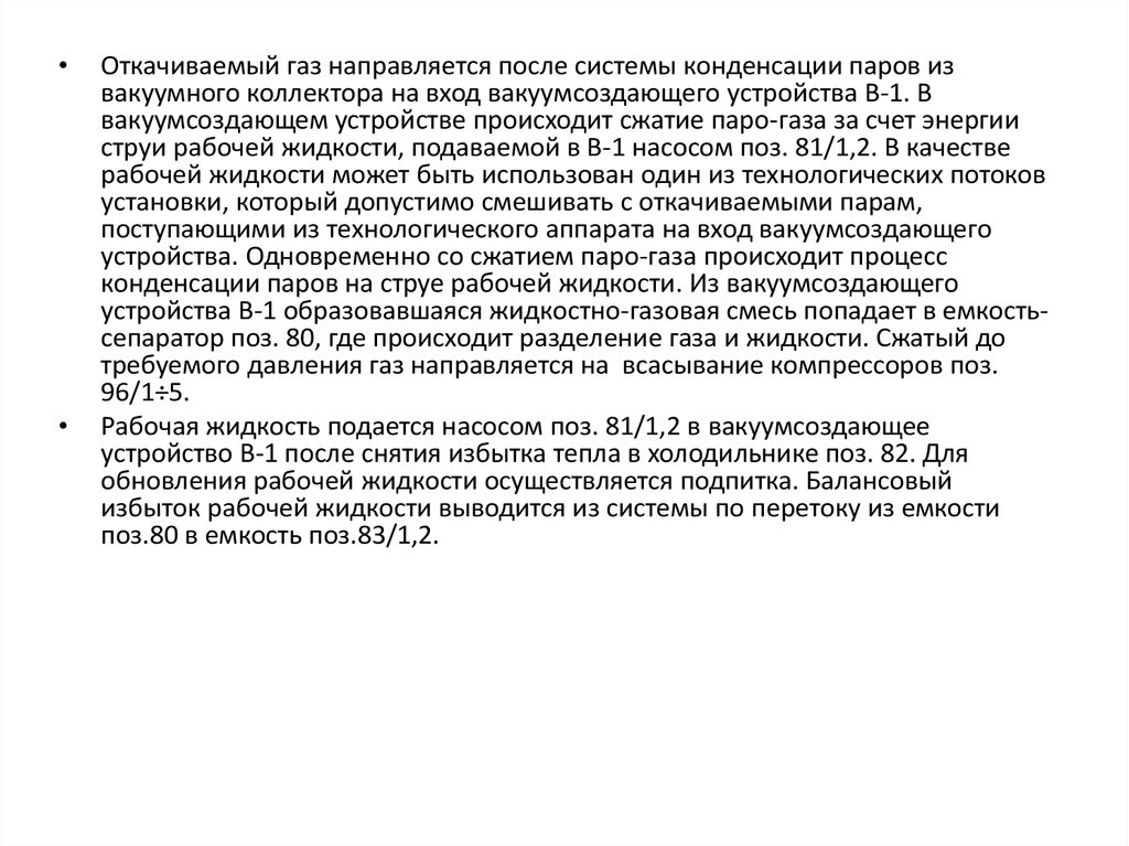 Рабочая жидкость подается насосом поз. 81/1,2 в вакуумсоздающее