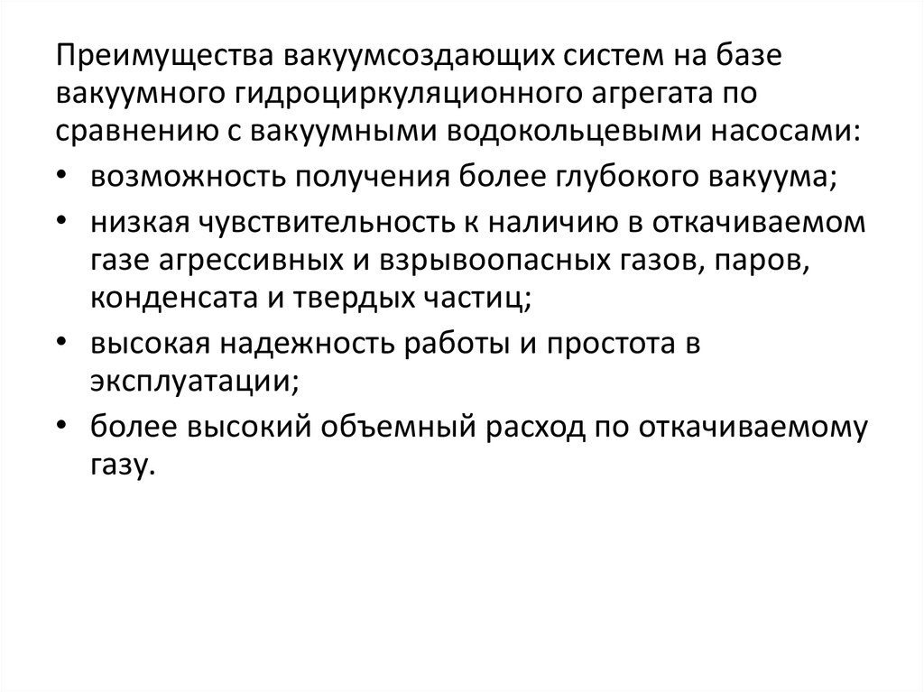 Преимущества вакуумсоздающих систем на базевакуумного гидроциркуляционного агрегата по