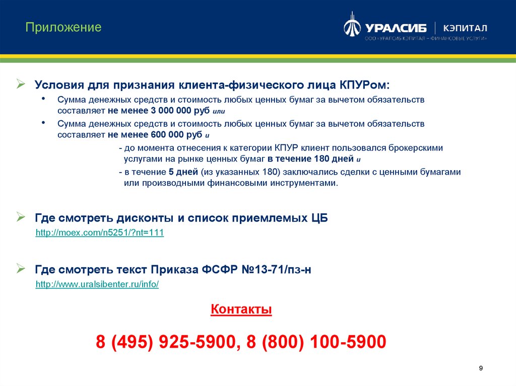 ПриложениеУсловия для признания клиента-физического лица КПУРом: