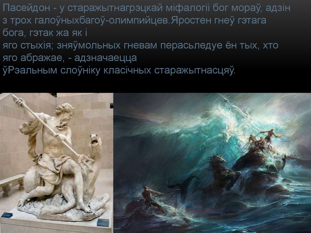 Пасейдон - у старажытнагрэцкай міфалогіі бог мораў, адзінз трох галоўныхбагоў-олимпийцев.Яростен гнеў гэтага