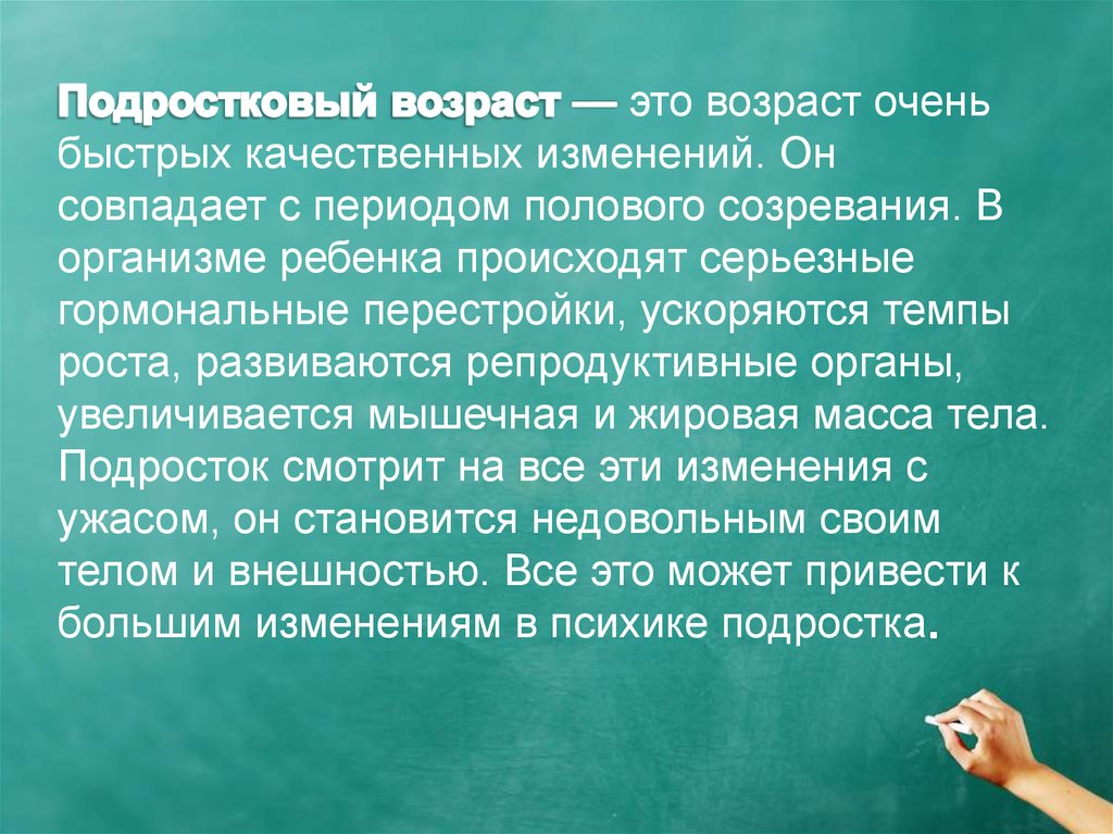 это возраст оченьбыстрых качественных изменений. Он