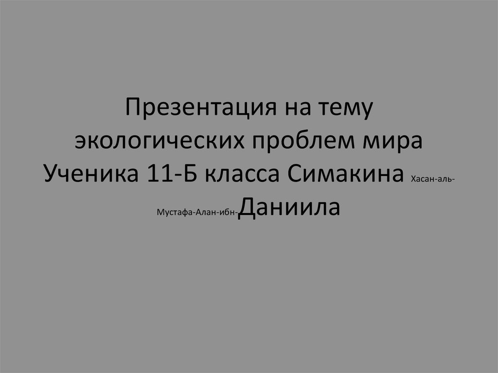1. Презентация на тему экологических проблем мира Ученика 11-Б класса Симакина Хасан-аль-Мустафа-Алан-ибн-Даниила