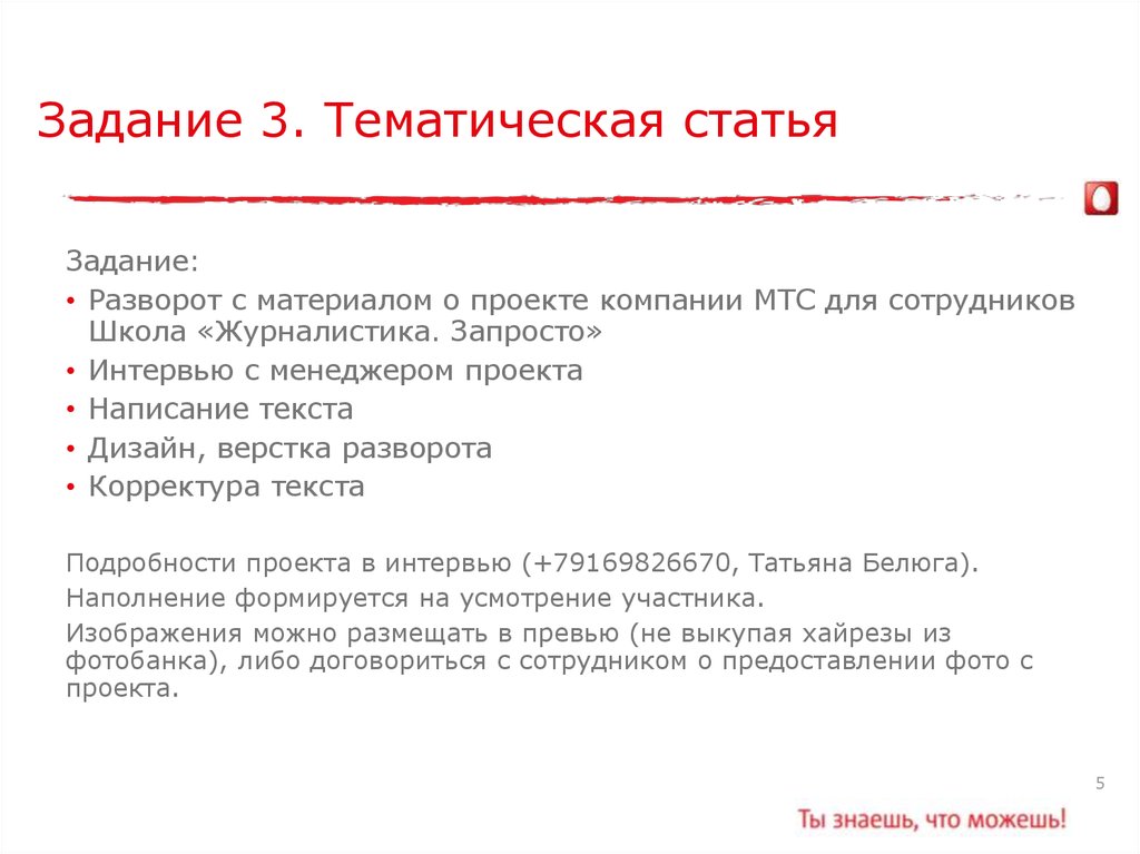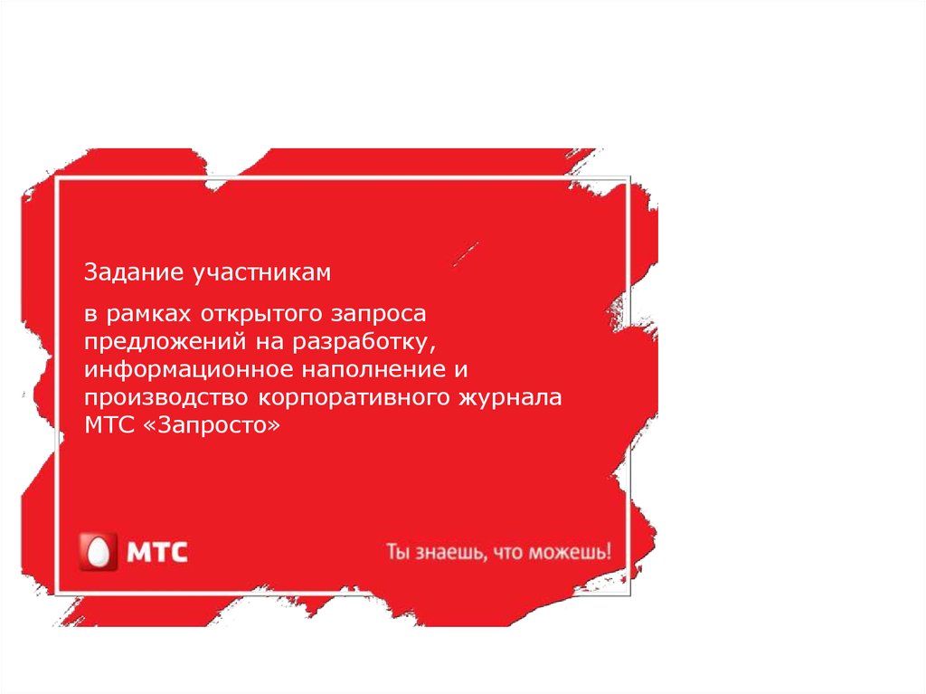 Задание участникам в рамках запроса предложений на разработку, наполнение и производство корпоративного журнала МТС «Запросто»