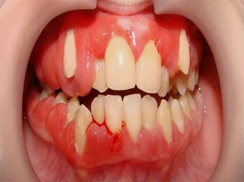 Гистологически: гиперплазия соединительной ткани десны с разной степенью
