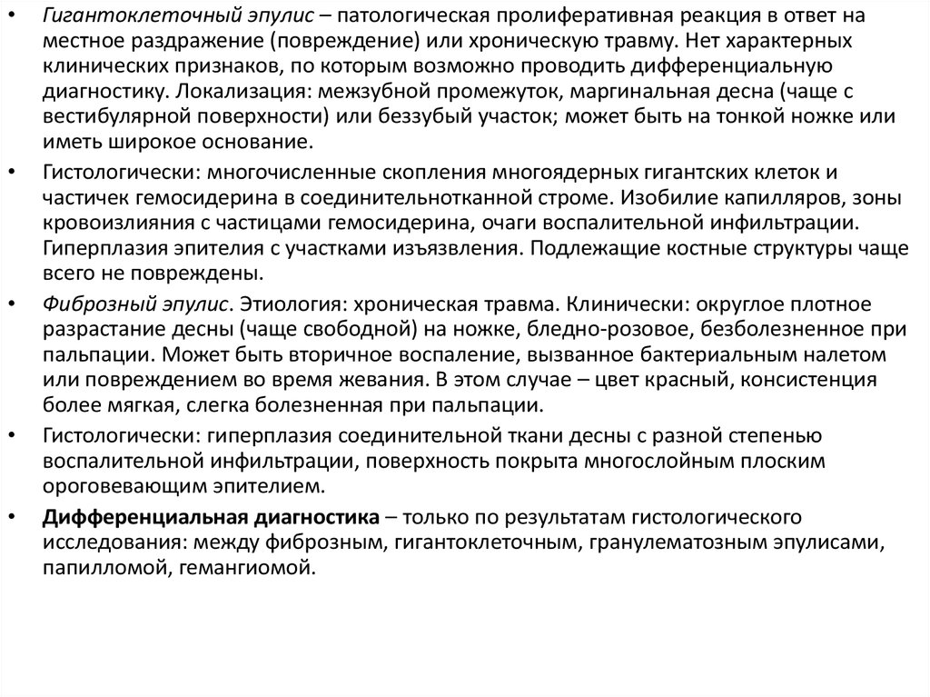 исследования: между фиброзным, гигантоклеточным, гранулематозным эпулисами,