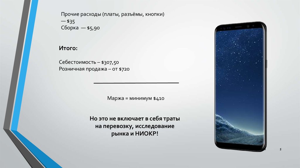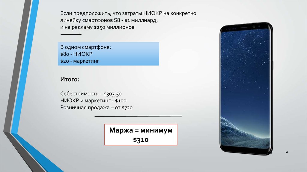 Если предположить, что затраты НИОКР на конкретнолинейку смартфонов S8 - $1 миллиард,