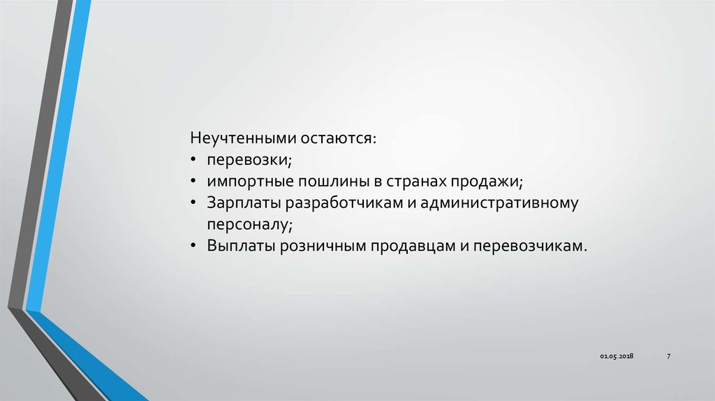 Неучтенными остаются:• перевозки;