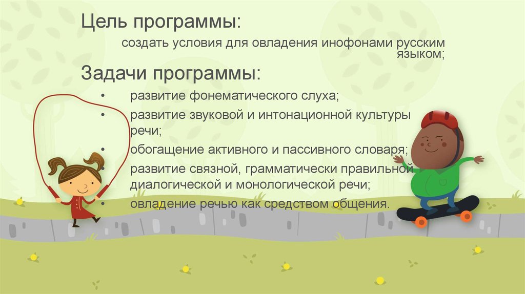 Цель программы:создать условия для овладения инофонами русским