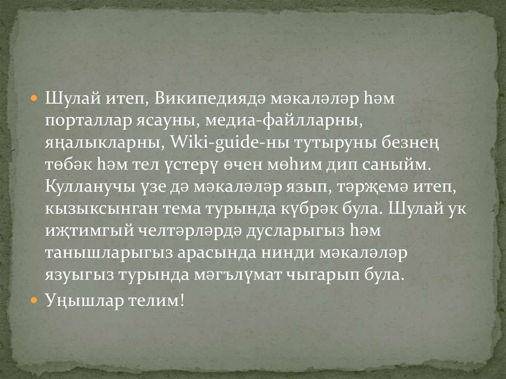мәгълүмат өстәп барсагыз, ахыр чиктә шактый