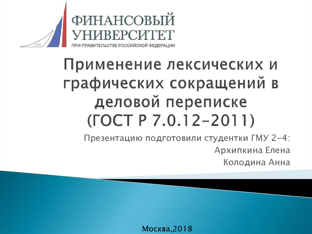 1. Применение лексических и графических сокращений в деловой переписке (ГОСТ Р 7.0.12-2011)