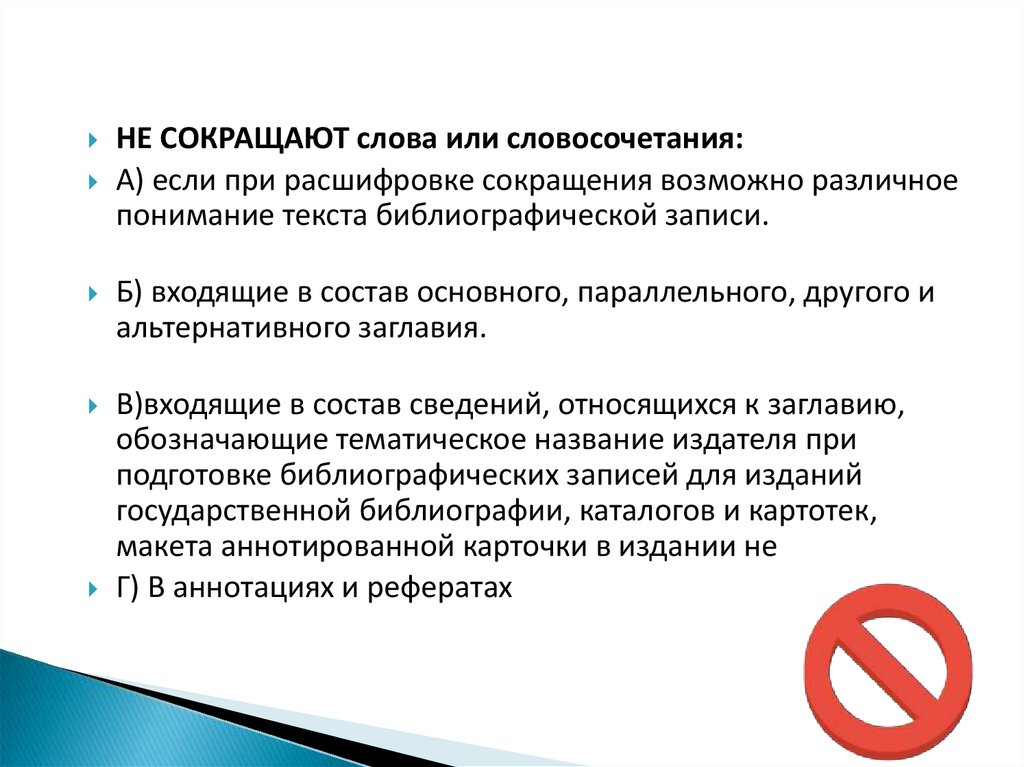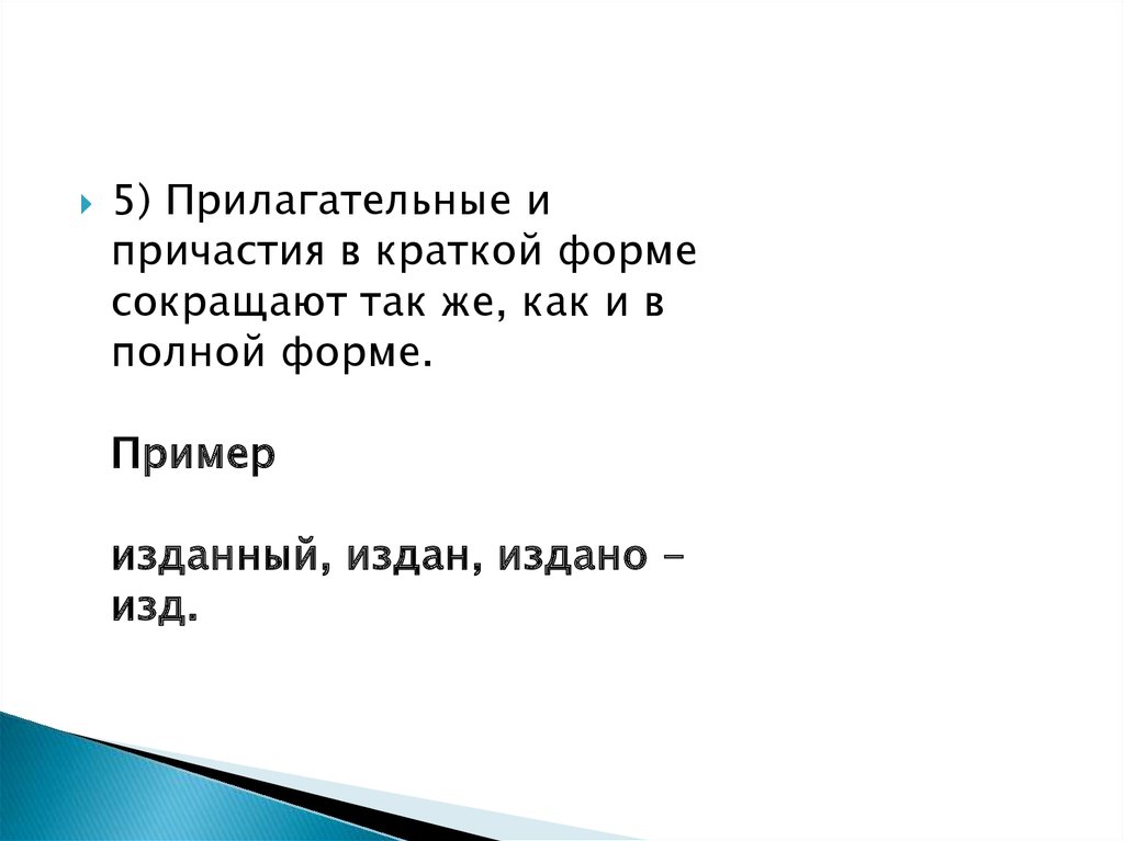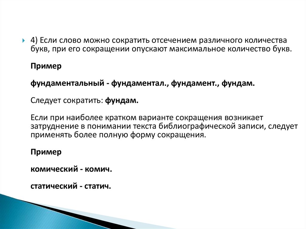 4) Если слово можно сократить отсечением различного количествабукв, при его сокращении опускают максимальное количество букв.