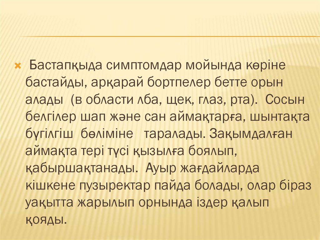 Бастапқыда симптомдар мойында көрінебастайды, арқарай бортпелер бетте орын