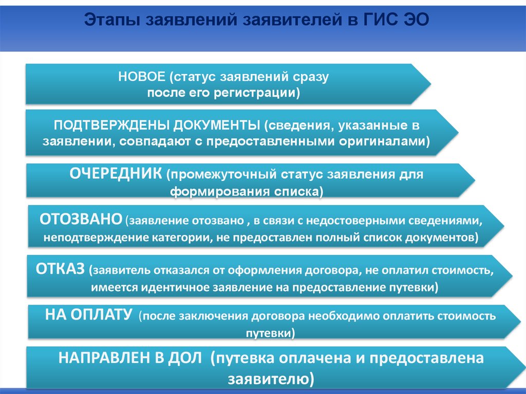 Этапы заявлений заявителей в ГИС ЭОНОВОЕ (статус заявлений сразу