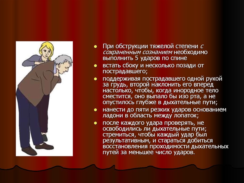 При обструкции тяжелой степени ссохраненным сознанием необходимо