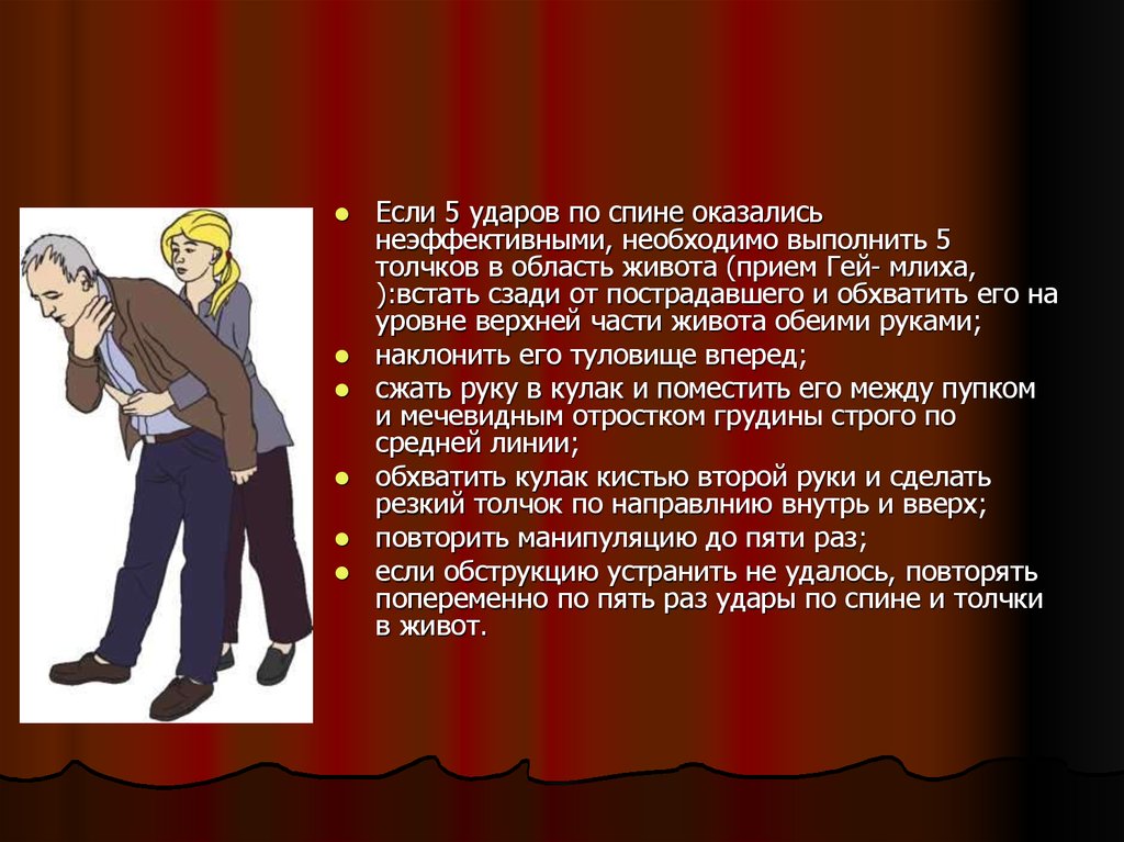 Если 5 ударов по спине оказалисьнеэффективными, необходимо выполнить 5