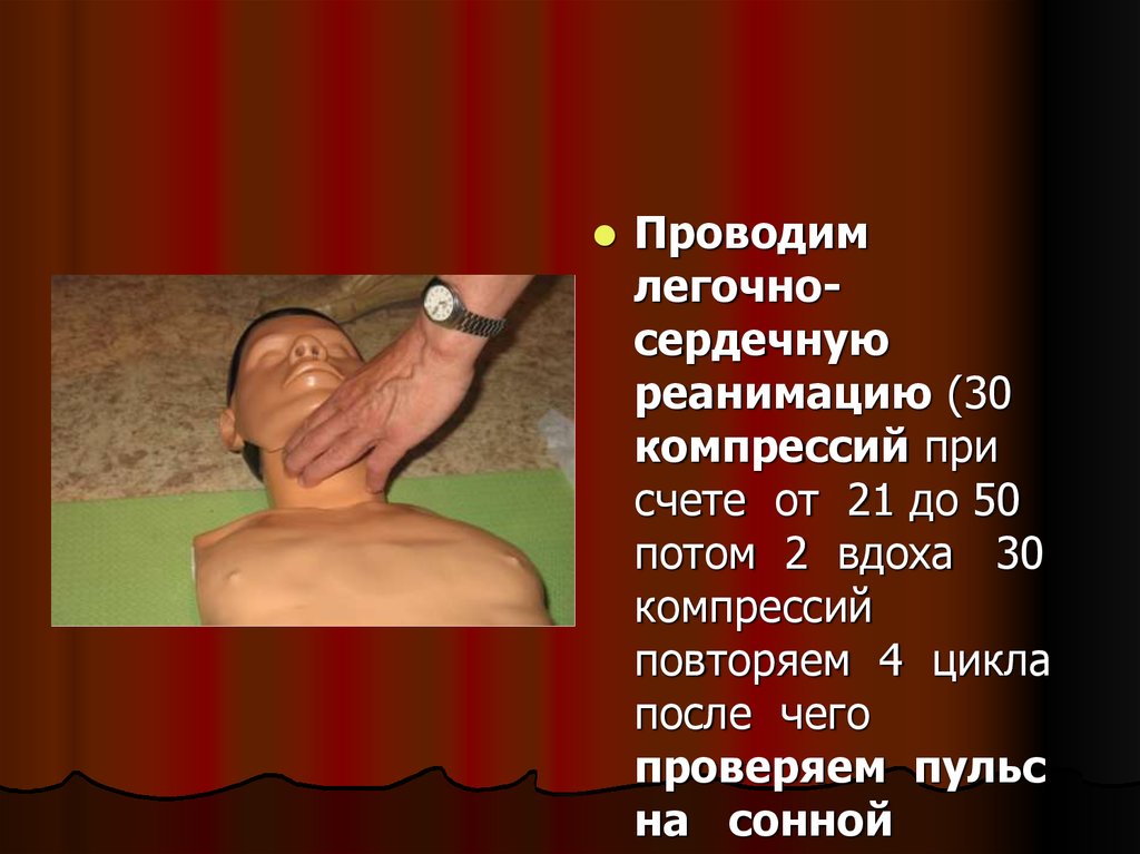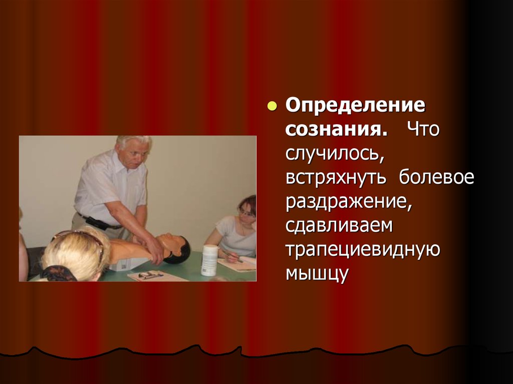 опуститься на колени рядом с больным иубедиться, что обе его ноги выпрямлены;