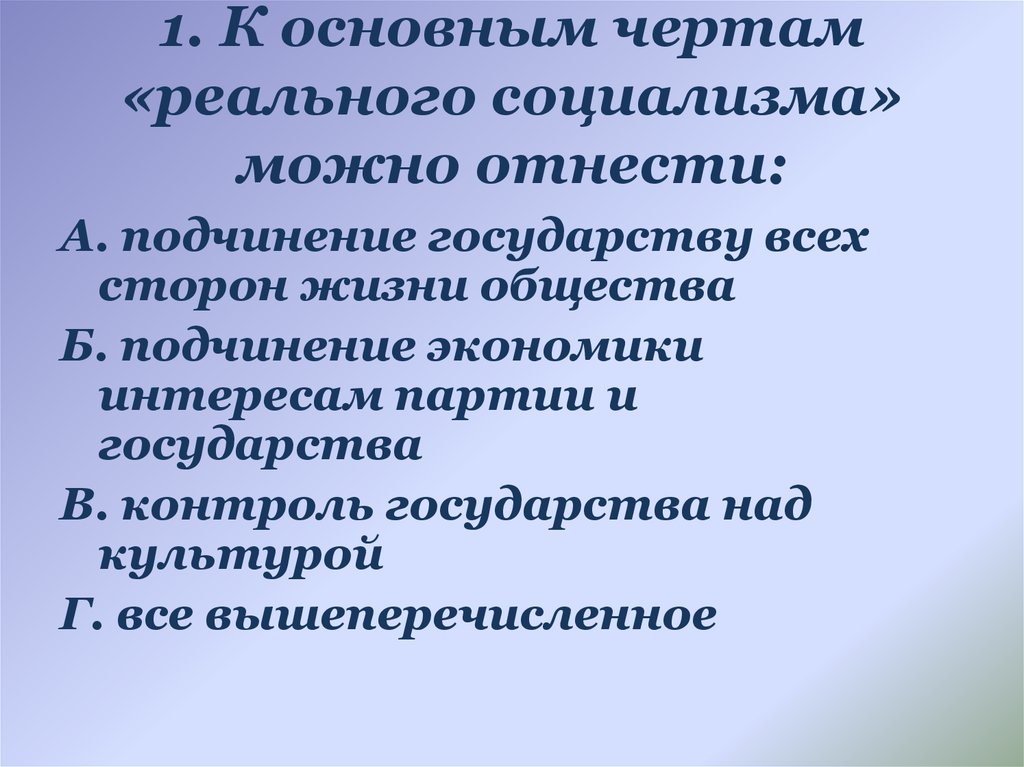 1. 1. К основным чертам «реального социализма» можно отнести: