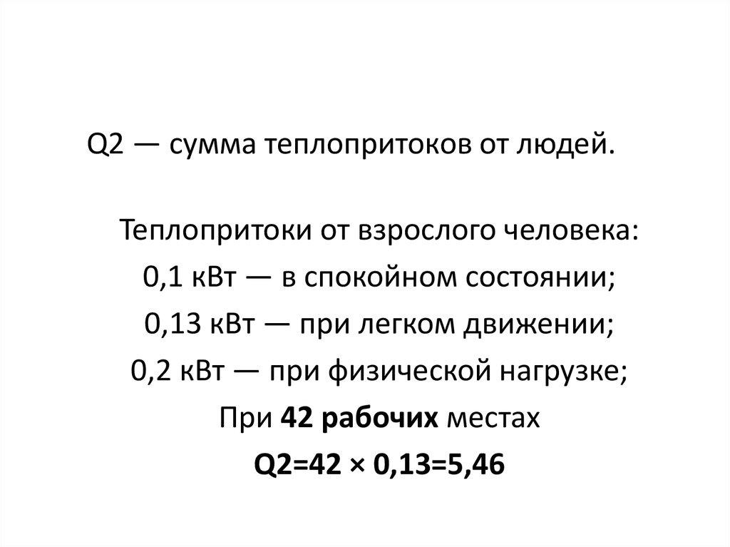 Q2 — сумма теплопритоков от людей.Теплопритоки от взрослого человека: