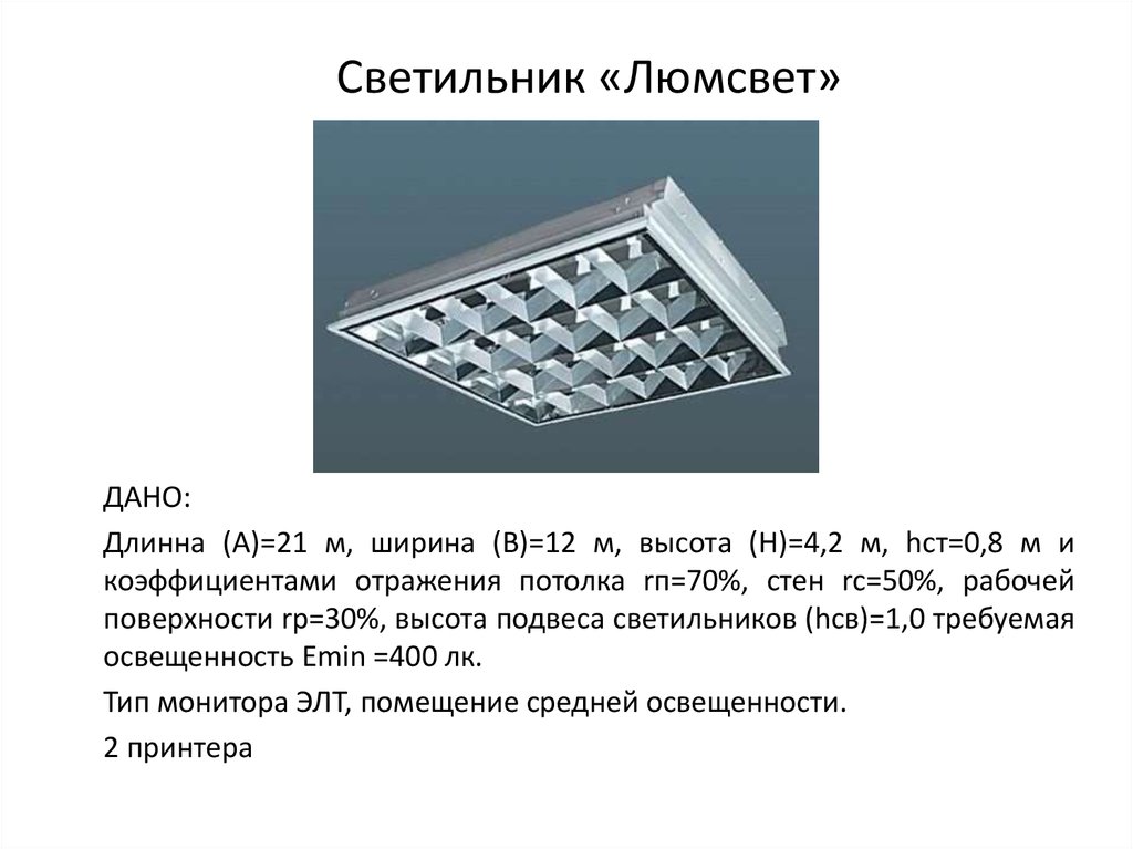 kз - коэффициент запаса (для люминесцентных и ламп ДРЛ, ДРИ