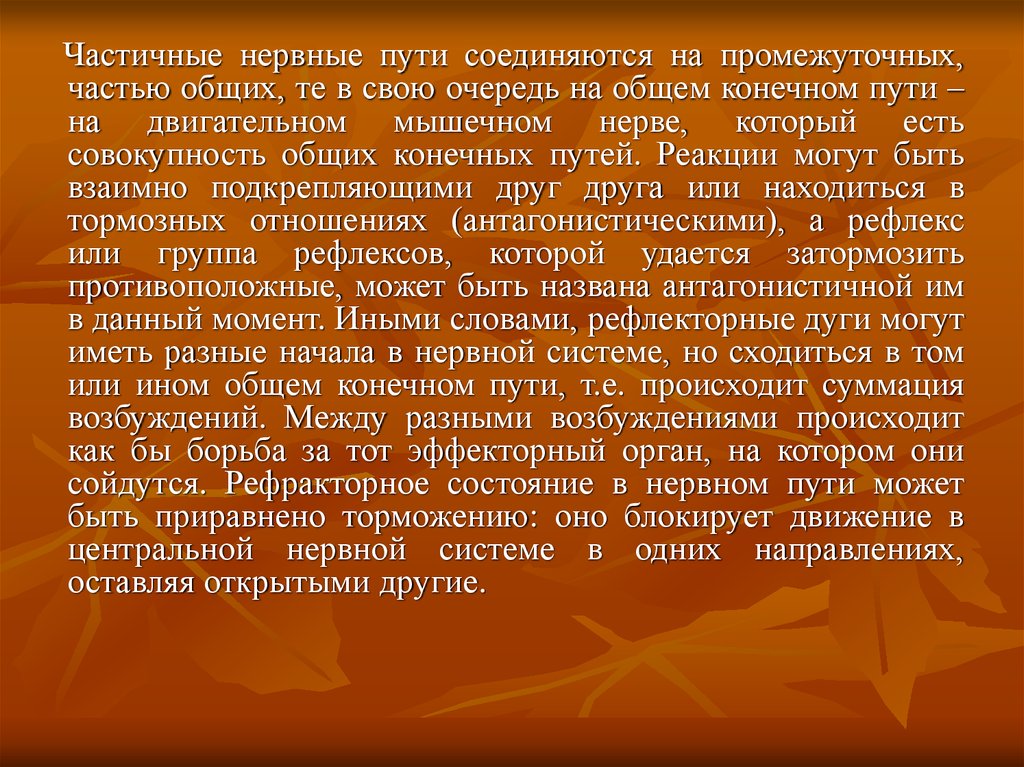 Частичные нервные пути соединяются на промежуточных,частью общих, те в свою очередь на общем конечном пути –