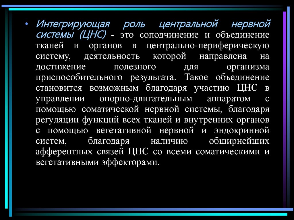 Высший уровень объединяет все центрырегуляции в единую регулирующую систему,