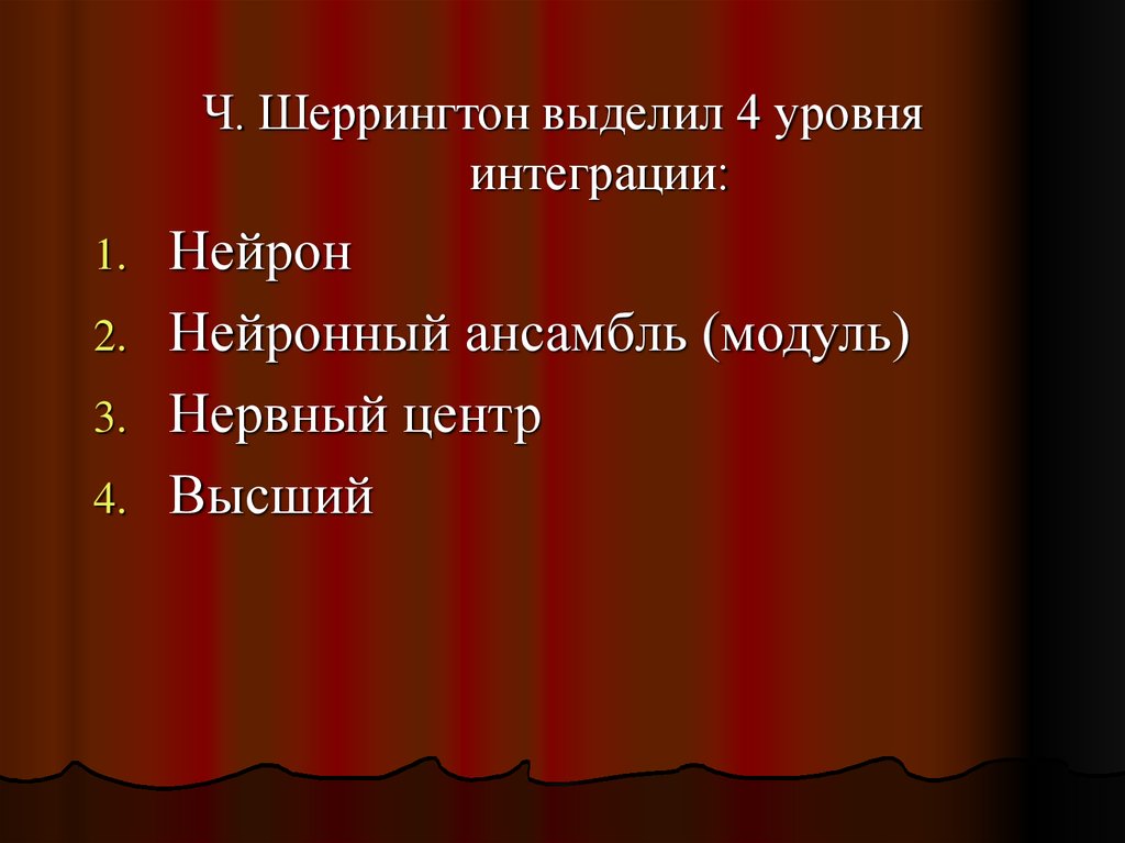 Ч. Шеррингтон выделил 4 уровняинтеграции: