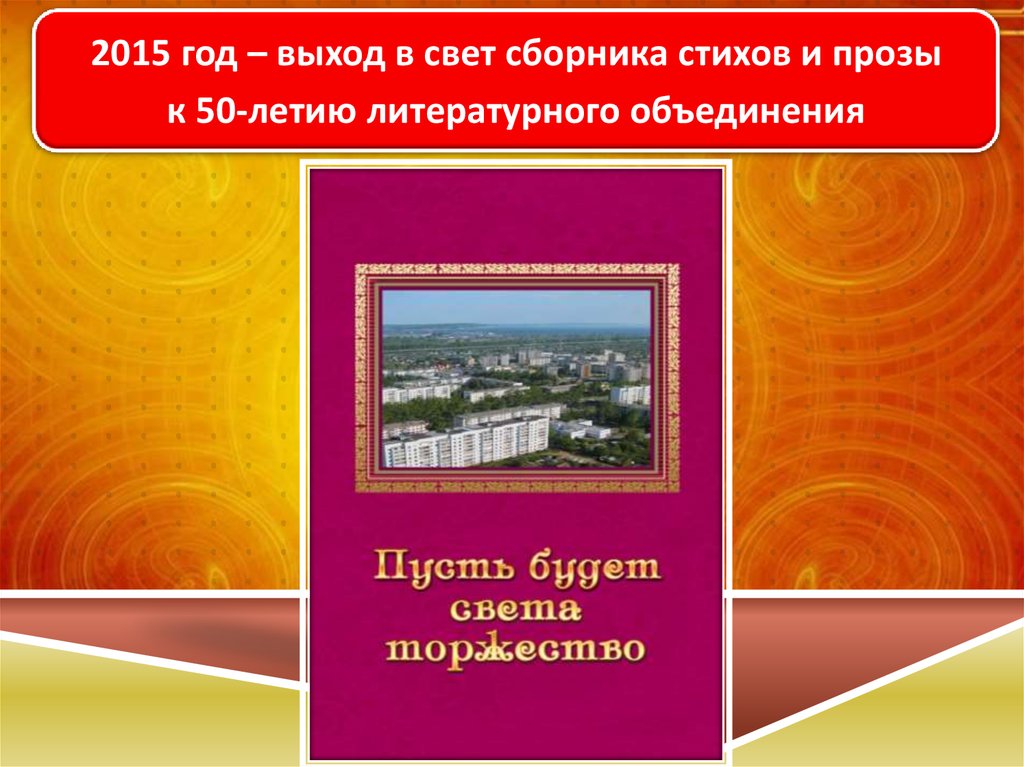 2015 год – выход в свет сборника стихов и прозык 50-летию литературного объединения