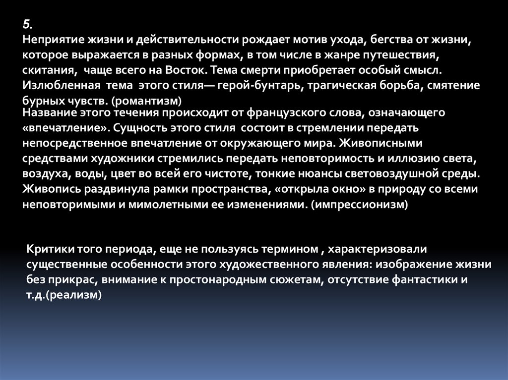 5.Неприятие жизни и действительности рождает мотив ухода, бегства от жизни,