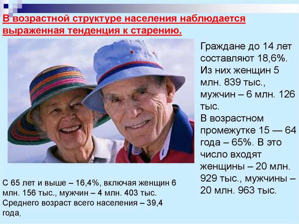 В возрастной структуре населения наблюдаетсявыраженная тенденция к старению.