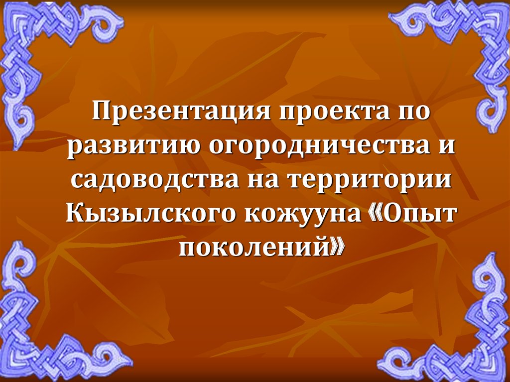 1. Презентация проекта по развитию огородничества и садоводства на территории Кызылского кожууна «Опыт поколений»
