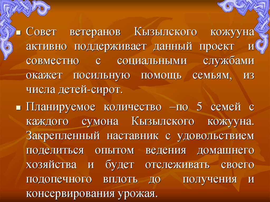 Совет ветеранов Кызылского кожуунаактивно поддерживает данный проект и