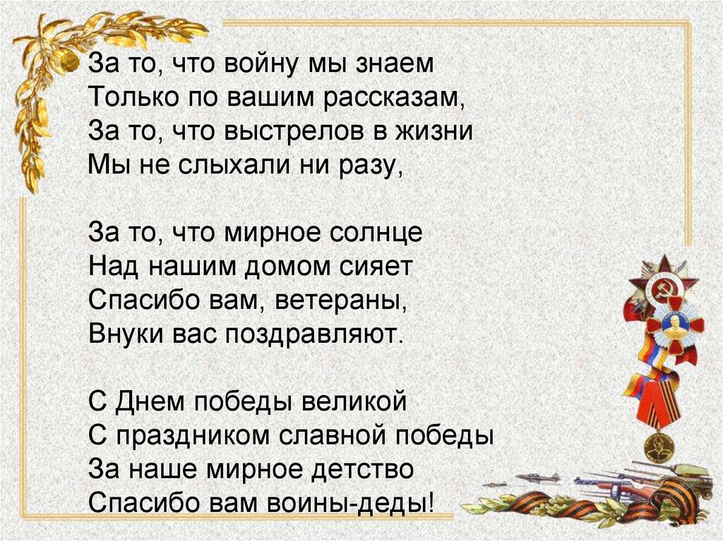 За то, что войну мы знаемТолько по вашим рассказам,
