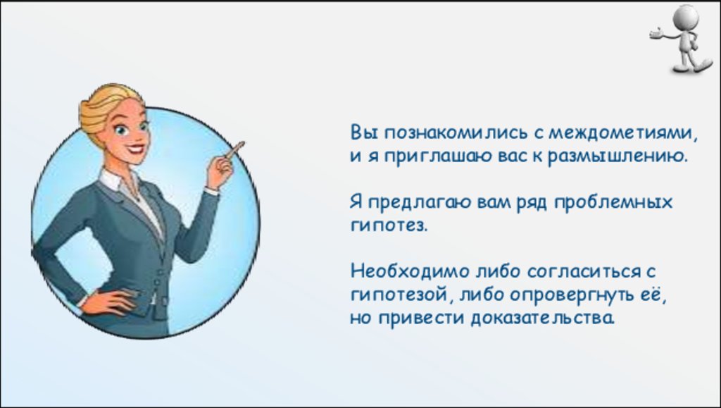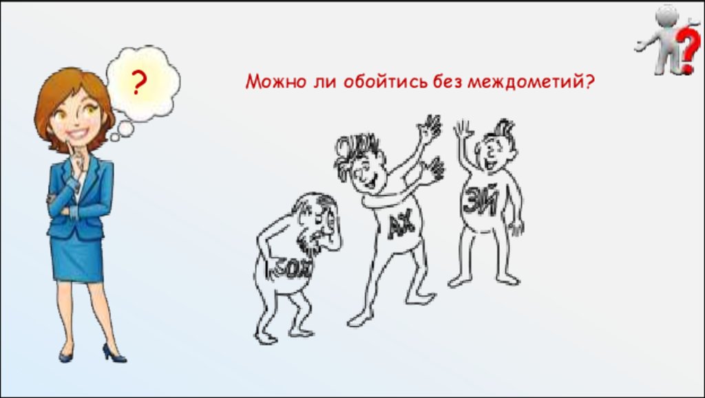 Вы познакомились с междометиями,и я приглашаю вас к размышлению.