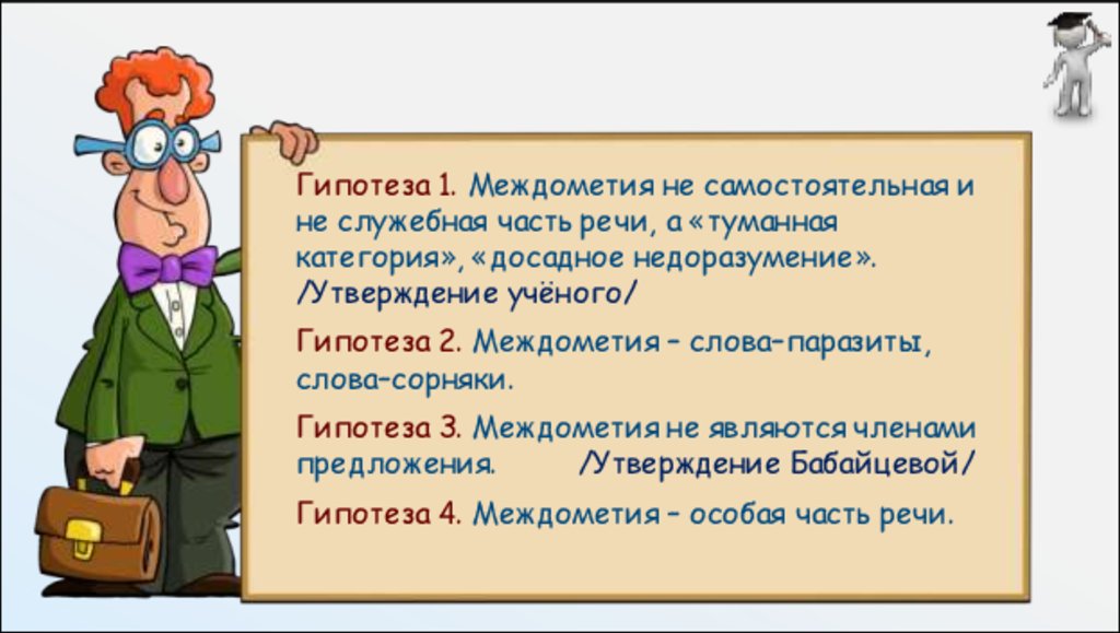 Гипотеза 1. Междометия не самостоятельная ине служебная часть речи, а «туманная