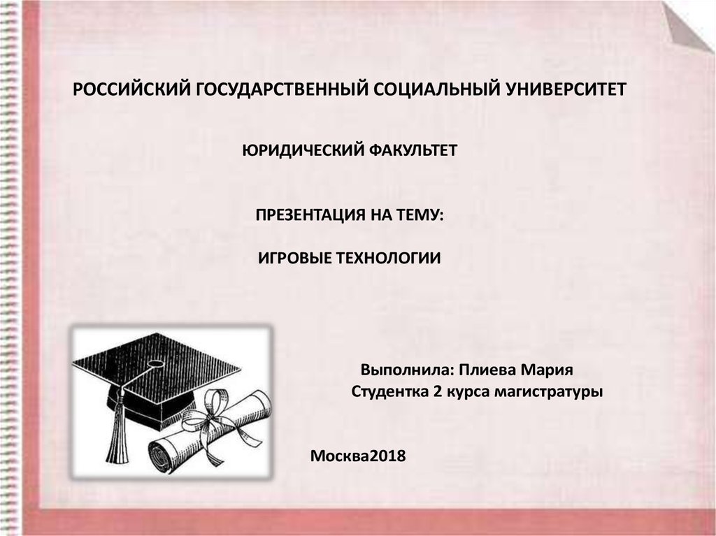 1. РОССИЙСКИЙ ГОСУДАРСТВЕННЫЙ СОЦИАЛЬНЫЙ УНИВЕРСИТЕТ ЮРИДИЧЕСКИЙ ФАКУЛЬТЕТ ПРЕЗЕНТАЦИЯ НА ТЕМУ: ИГРОВЫЕ ТЕХНОЛОГИИ