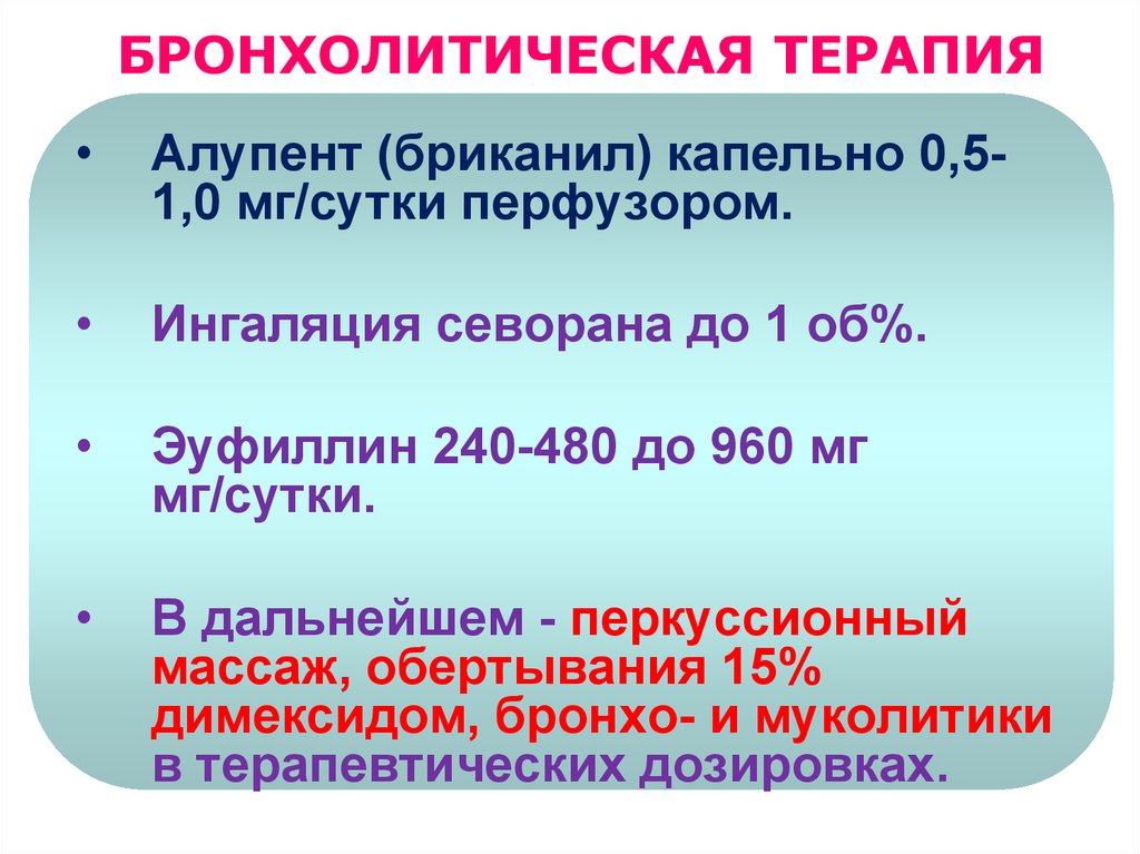 Также назначались: бронхолитиики (бриканил капельно 1,0