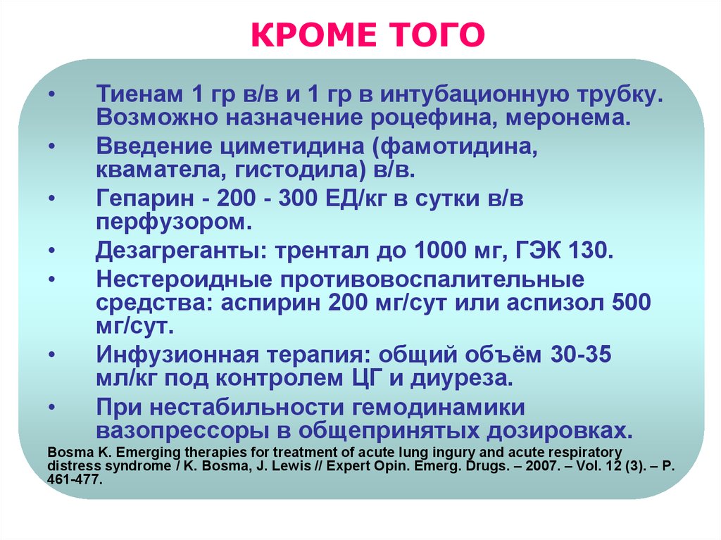 мг/сутки перфузором, эуфиллин; деэскалационная