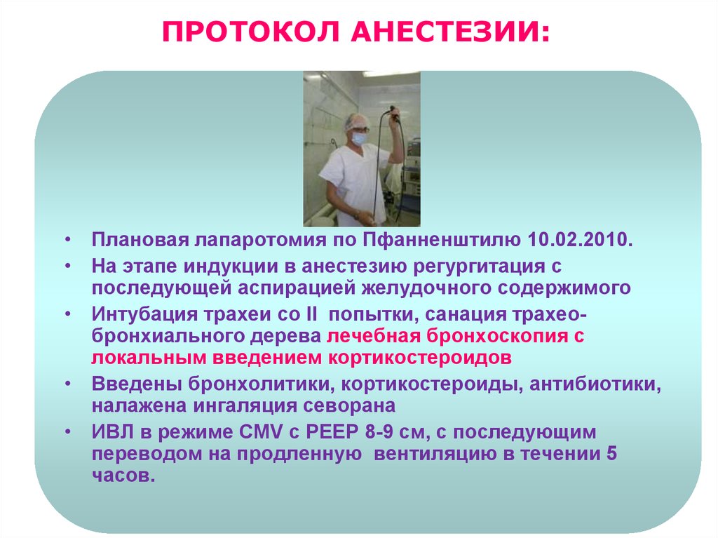 Несмотря на явные признаки аспирации (содержимое желудкав трахее, кратковременный цианоз, тахикардия, появление
