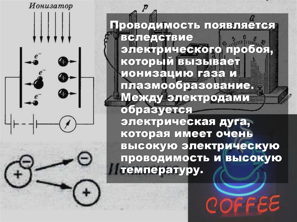 ионизацию газа и