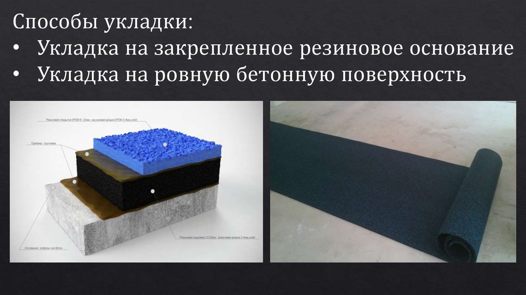 Способы укладки:• Укладка на закрепленное резиновое основание