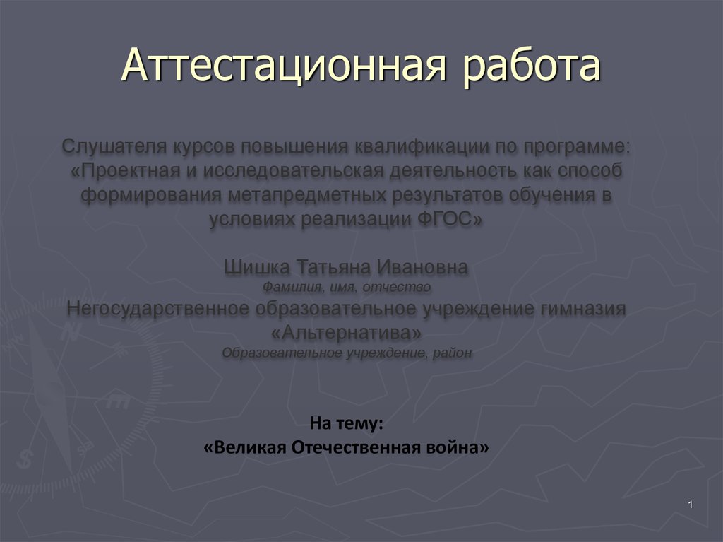 Слушателя курсов повышения квалификации по программе:«Проектная и исследовательская деятельность как способ
