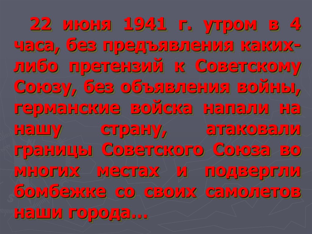 22 июня 1941 г. утром в 4часа, без предъявления какихлибо претензий к Советскому