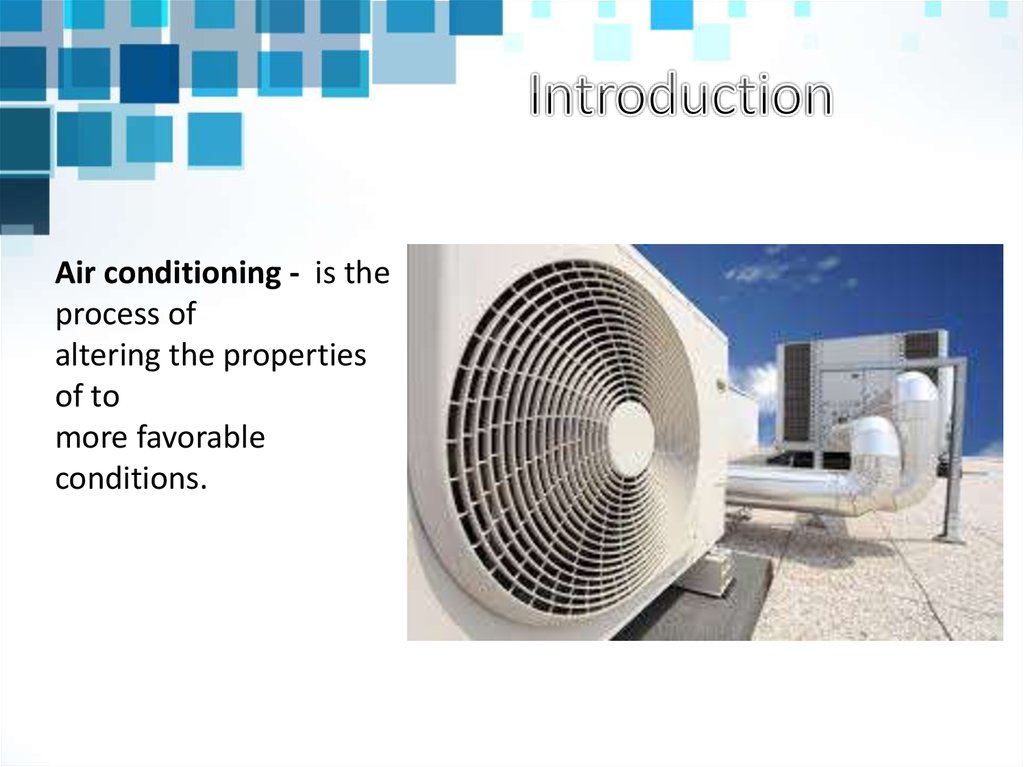 Air conditioning - is theprocess of